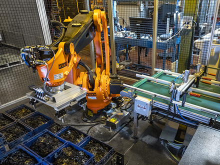 - Se paletiza de manera automatizada en cajas KLT para garantizar precisión, evitar errores humanos y optimizar la logística.